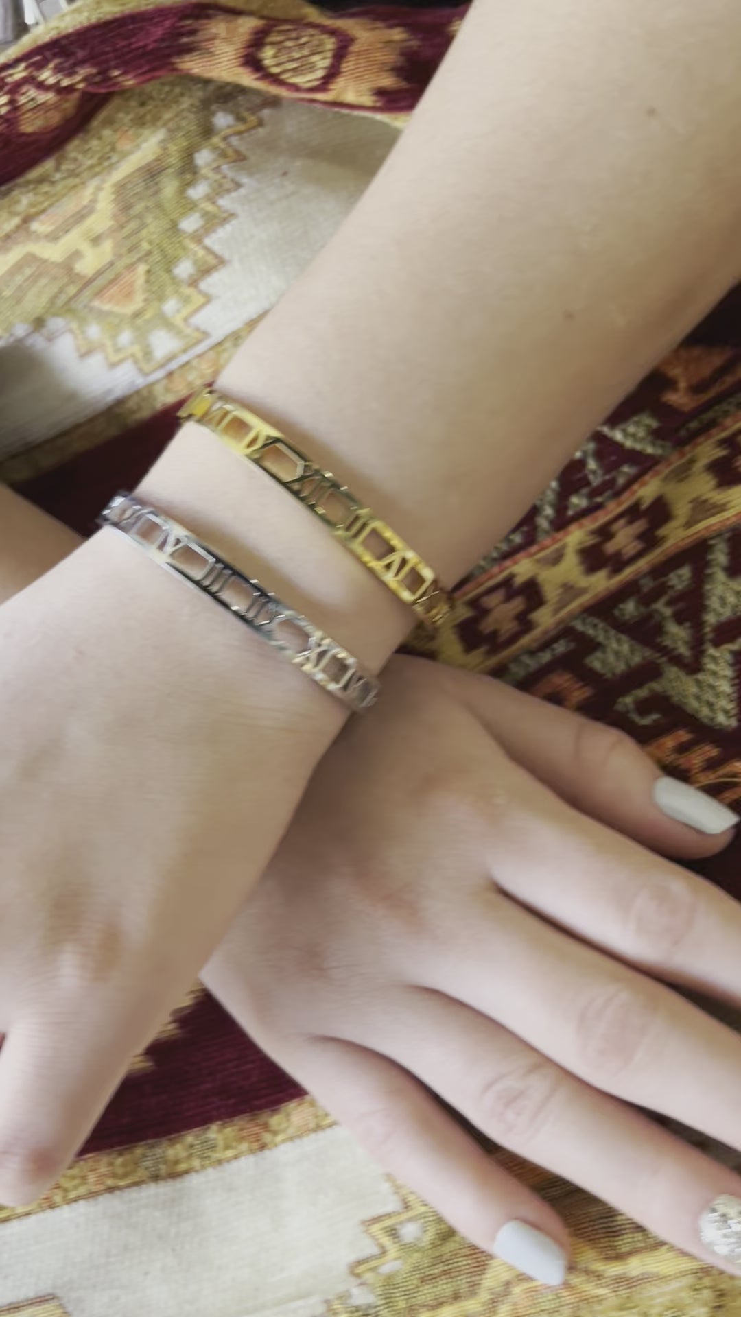 Stainless Steel Cuff Bracelet with Roman Numerals