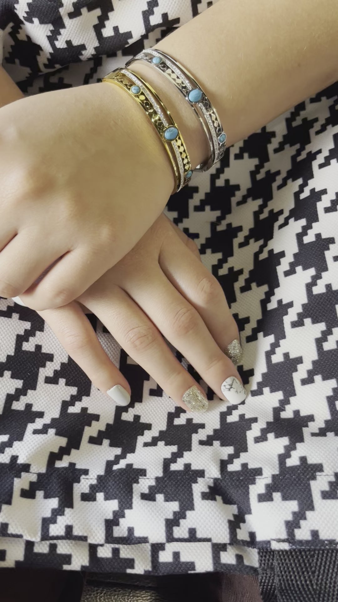 Stainless Steel Paved Zircon Bracelet with Turquoise Stone - SCBR5N07